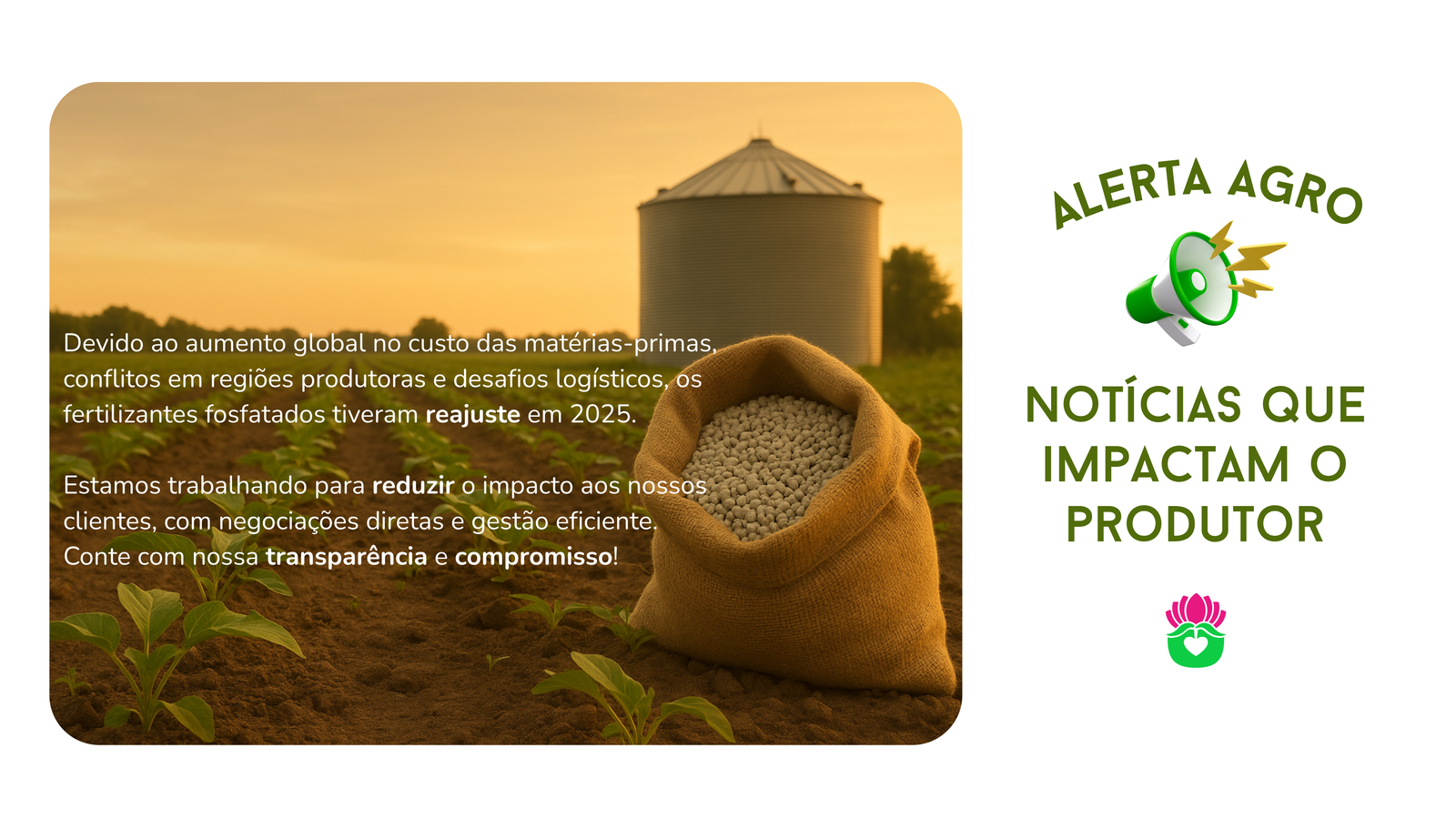 Nossa missão é cultivar um mundo mais fértil e sustentável, soluções inovadoras e eficazes para o setor agrícola. Estamos comprometidos em fornecer produtos de alta qualidade que impulsionem a produtividade e a saúde das colheitas, ao mesmo tempo em que promovamos práticas agrícolas responsáveis e respeitosas com o meio ambiente.